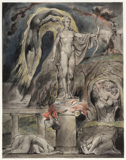 Ti offriamo una riproduzione artigianale su tela dell'opera famosa 'Il Santuario di Apollo: Inno di Milton, la mattina del Natale di' di William Blake, dal Museo delle Riproduzioni.