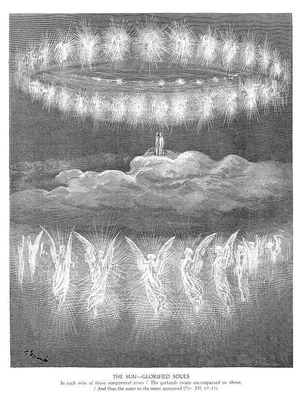 Ti offriamo una riproduzione artigianale su tela dell'opera famosa 'Il Sole - glorifica Souls' di Gustave Dore, dal Museo delle Riproduzioni.