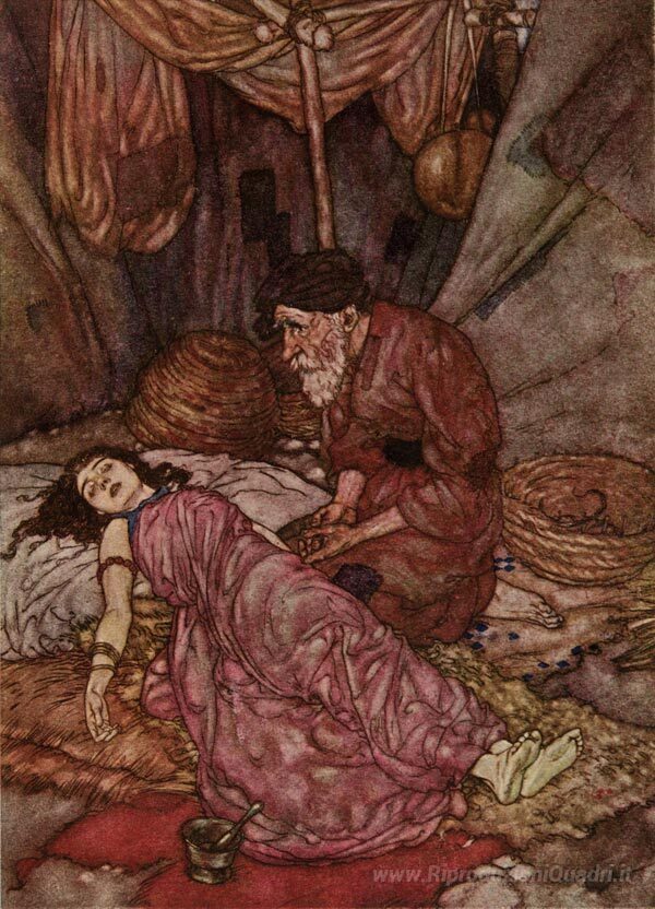 Ti offriamo una riproduzione artigianale su tela dell'opera famosa 'Il volto di misera Man, Il Rubaiyat di Omar Khayyam' di Edmund Dulac, dal Museo delle Riproduzioni.
