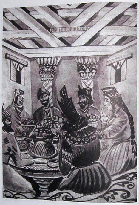 Ti offriamo una riproduzione artigianale su tela dell'opera famosa 'Illustrazione a 'racconti popolari armeni'' di Martiros Saryan, dal Museo delle Riproduzioni.