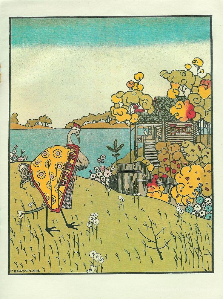 Ti offriamo una riproduzione artigianale su tela dell'opera famosa 'Illustrazione di 'La gru e aironi. Orso '.' di Heorhiy Narbut, dal Museo delle Riproduzioni.
