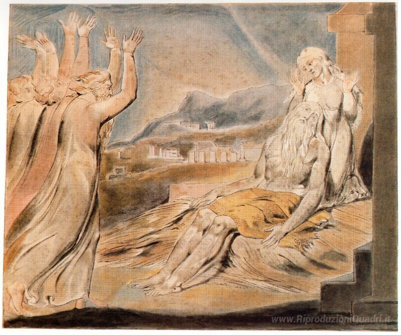 Ti offriamo una riproduzione artigianale su tela dell'opera famosa 'Illustrazione di Libro di Giobbe' di William Blake, dal Museo delle Riproduzioni.