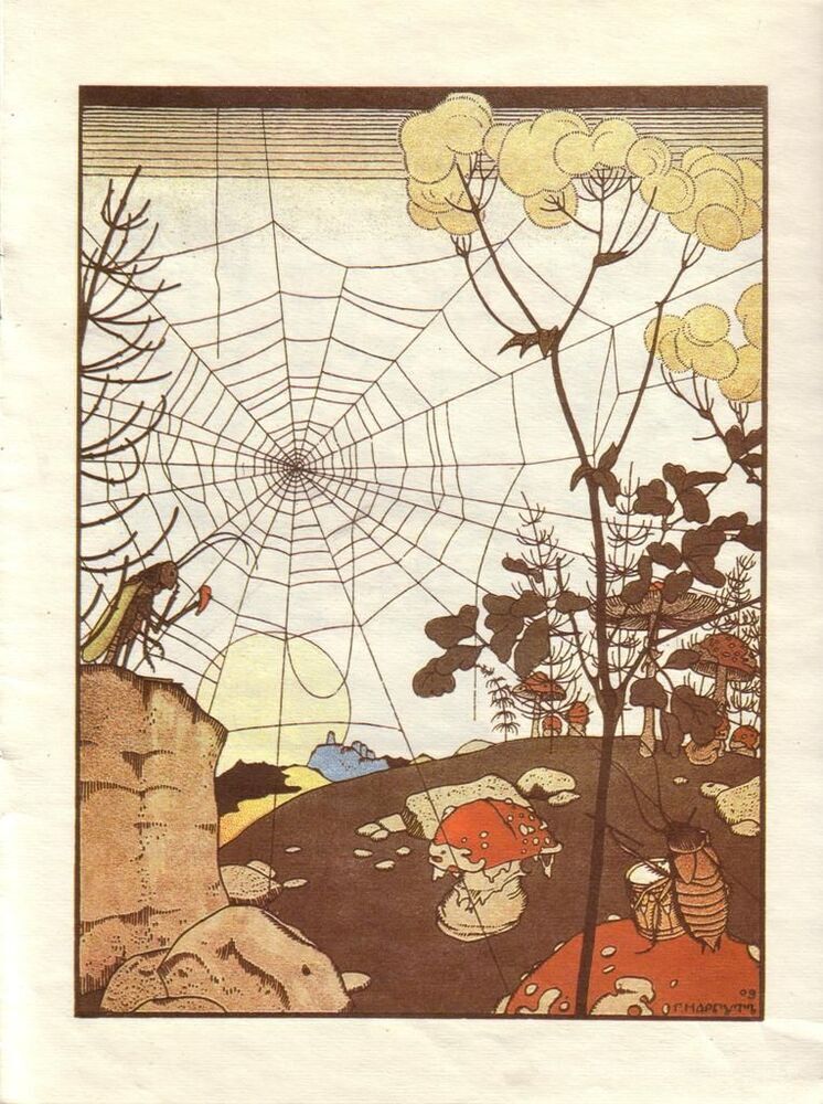 Ti offriamo una riproduzione artigianale su tela dell'opera famosa 'Illustrazione. 'Fairy Tales: Teremok. Mizgir '.' di Heorhiy Narbut, dal Museo delle Riproduzioni.