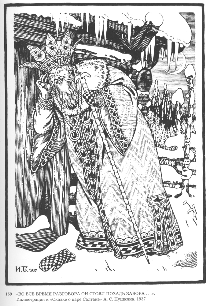 Ti offriamo una riproduzione artigianale su tela dell'opera famosa 'Illustrazione per 'Favola della zar Saltan' di Alexander Pushkin' di Ivan Bilibin, dal Museo delle Riproduzioni.