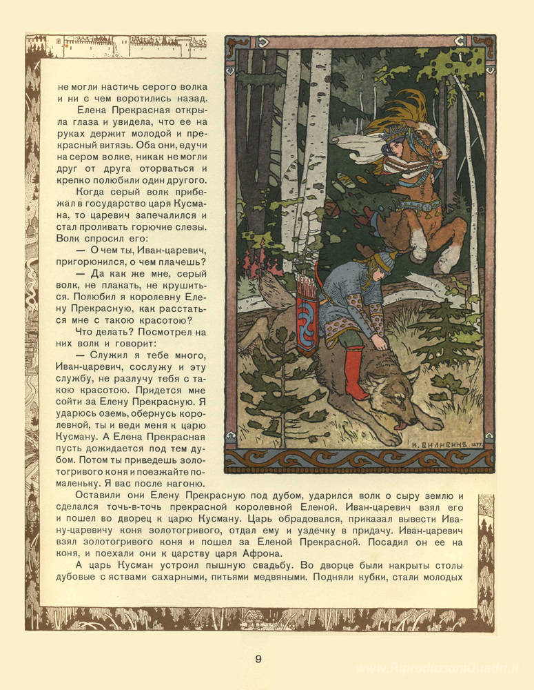 Scoprite l'incanto del mondo artistico con l'opera Illustrazione per il racconto del principe Ivan del maestro Ivan Bilibin. Nato nelle terre russe, Bilibin è celebre per la sua capacità di fonde la tradizione locale con un linguaggio visivo innovativo, dando vita a opere che raccontano storie e evocano emozioni. Con il suo stile distintivo, caratterizzato da linee sinuose e una tavolozza ricca e vibrante, ogni dipinto diventa una porta aperta su un’epoca e un’atmosfera uniche.