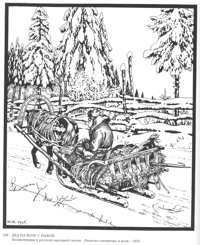 Ti offriamo una riproduzione artigianale su tela dell'opera famosa 'Illustrazione per la favola "Fox-sorella"' di Ivan Bilibin, dal Museo delle Riproduzioni.