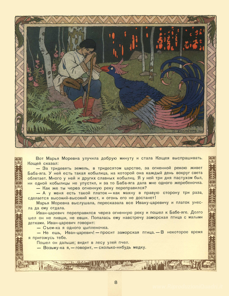 Ti offriamo una riproduzione artigianale su tela dell'opera famosa 'Illustrazione per la favola russa "Maria Morevna"' di Ivan Bilibin, dal Museo delle Riproduzioni.