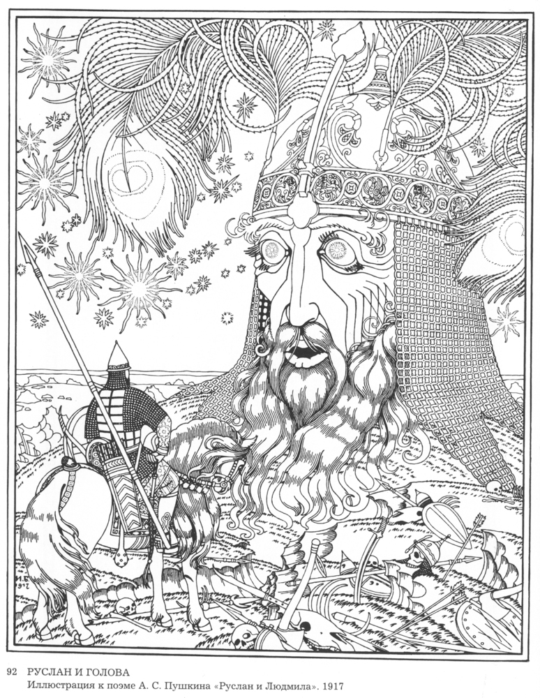 Scopri l'incanto dell'opera Illustrazione per la poesia 'Ruslan e Lyudmila' dell'artista Ivan Bilibin, un capolavoro che fonde l'eleganza della tradizione russa con la magia del racconto poetico. Bilibin, noto per il suo stile distintivo, utilizza colori vivaci e dettagli intricati per creare atmosfere sognanti che catturano lo spettatore e lo conducono in un viaggio visivo senza tempo.