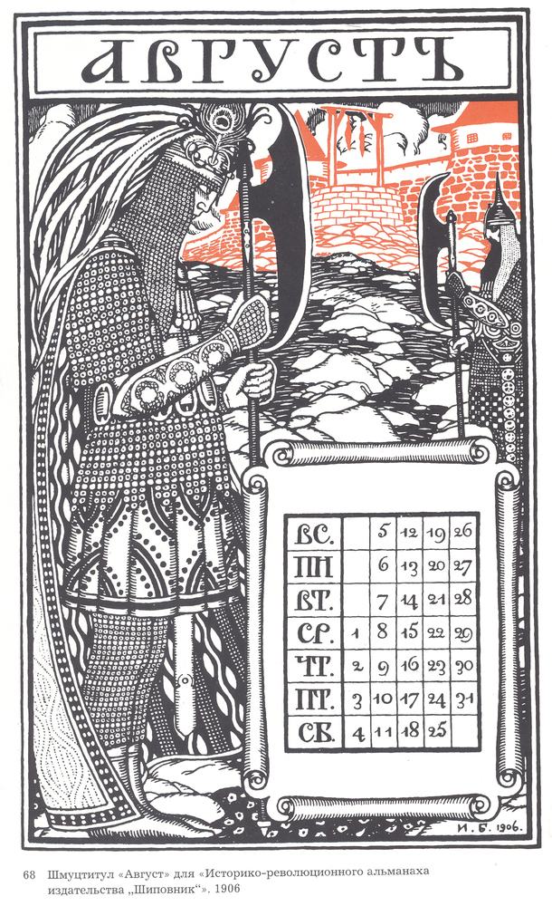 Ti offriamo una riproduzione artigianale su tela dell'opera famosa 'Illustrazione per la rivoluzionaria storico Almanacco dell'edito' di Ivan Bilibin, dal Museo delle Riproduzioni.