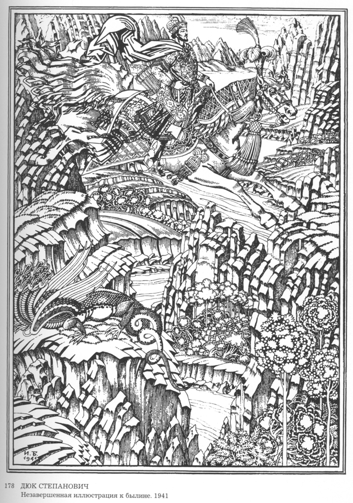 Ti offriamo una riproduzione artigianale su tela dell'opera famosa 'Illustrazione per l'epica "Duke Stepanovich"' di Ivan Bilibin, dal Museo delle Riproduzioni.