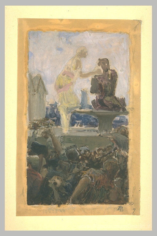 Ti offriamo una riproduzione artigianale su tela dell'opera famosa 'Illustrazione per Notre-Dame de Paris' di Luc-Olivier Merson, dal Museo delle Riproduzioni.