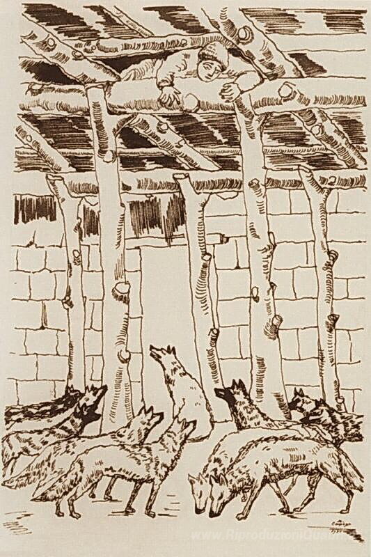 Ti offriamo una riproduzione artigianale su tela dell'opera famosa 'Illustrazione per racconto di Hovhannes Tumanyan 'Wolf'' di Martiros Saryan, dal Museo delle Riproduzioni.