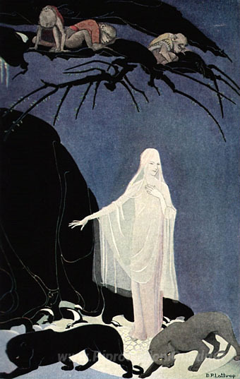 Benvenuti nel nostro angolo dedicato ai dipinti a olio italiani, dove ogni opera racconta una storia unica e affascinante. Oggi vi presentiamo l’incantevole Illustrazione per The Three-Mulla mulgars di Dorothy Lathrop, un'artista rinomata per la sua capacità di catturare l'essenza di mondi fantastici attraverso la sua pittura olio. Lathrop, attiva nei primi decenni del XX secolo, si distingue per uno stile che combina una delicatezza visiva a una profonda interpretazione narrativa, rendendo ogni opera un viaggio emozionale.