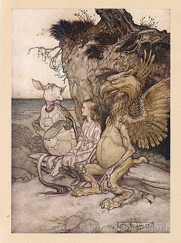 Ti offriamo una riproduzione artigianale su tela dell'opera famosa 'La Finta Tartaruga fece un lungo respiro e disse: 'Questo è molt' di Arthur Rackham, dal Museo delle Riproduzioni.