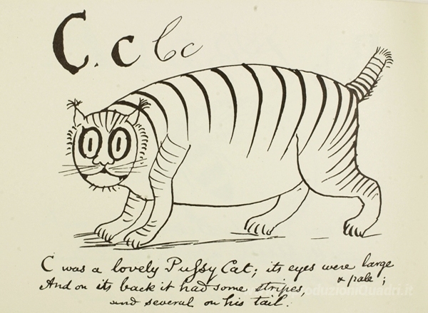 Ti offriamo una riproduzione artigianale su tela dell'opera famosa 'La lettera C dell'alfabeto' di Edward Lear, dal Museo delle Riproduzioni.
