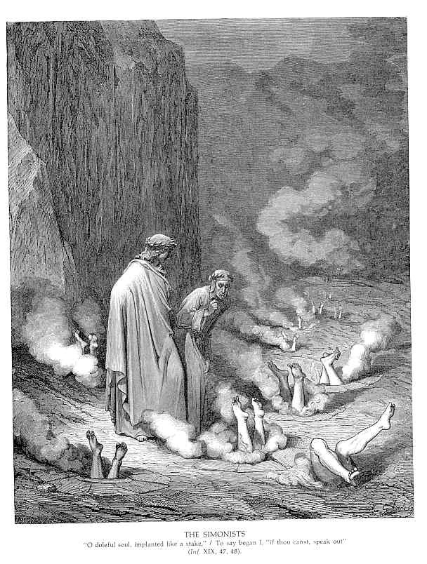 Ti offriamo una riproduzione artigianale su tela dell'opera famosa 'La punizione dei simoniaci' di Gustave Dore, dal Museo delle Riproduzioni.
