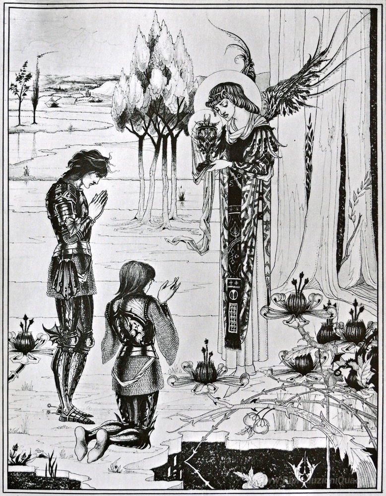 Ti offriamo una riproduzione artigianale su tela dell'opera famosa 'La realizzazione del Sangreal' di Aubrey Beardsley, dal Museo delle Riproduzioni.