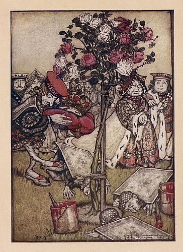 Ti offriamo una riproduzione artigianale su tela dell'opera famosa 'La Regina si voltò con rabbia lontano da lui e disse al Fante, '' di Arthur Rackham, dal Museo delle Riproduzioni.