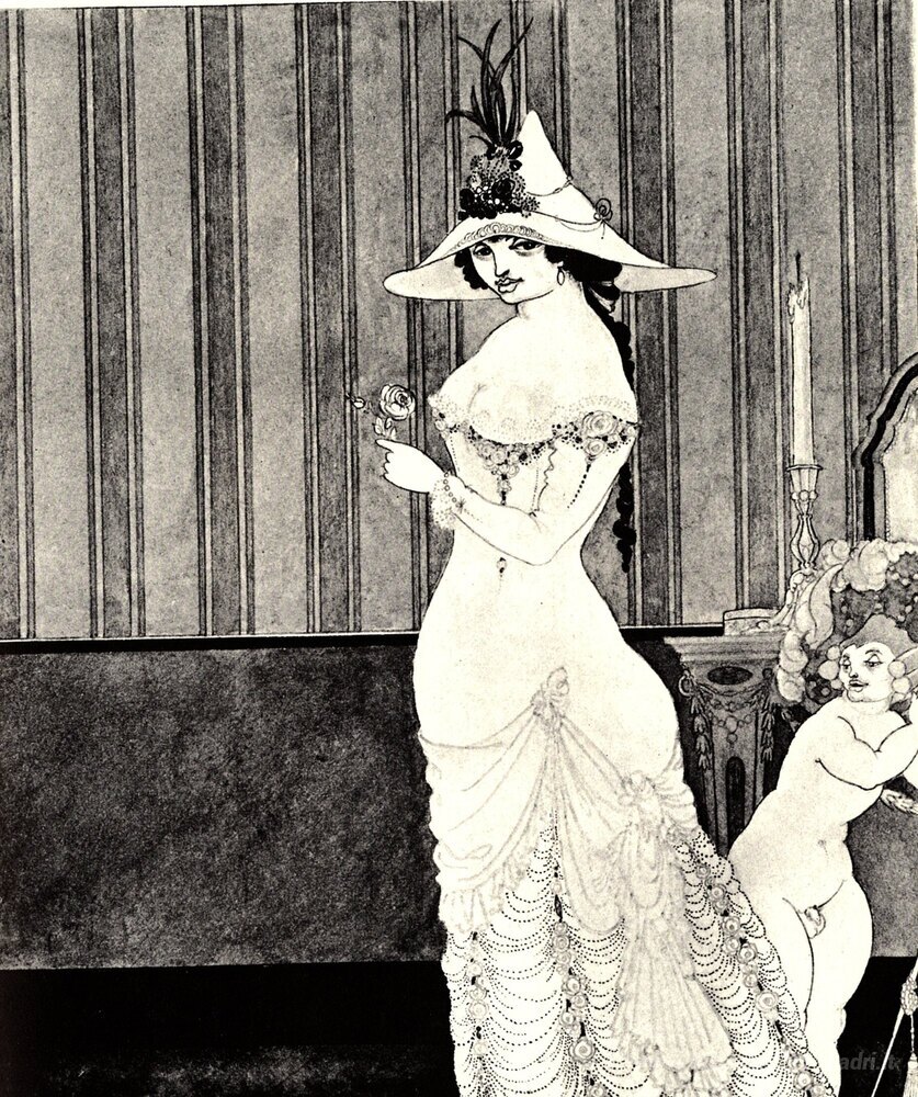 Ti offriamo una riproduzione artigianale su tela dell'opera famosa 'La signora con la Rosa' di Aubrey Beardsley, dal Museo delle Riproduzioni.