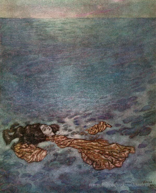 Ti offriamo una riproduzione artigianale su tela dell'opera famosa 'La Sirenetta: dissoluzione in schiuma' di Edmund Dulac, dal Museo delle Riproduzioni.