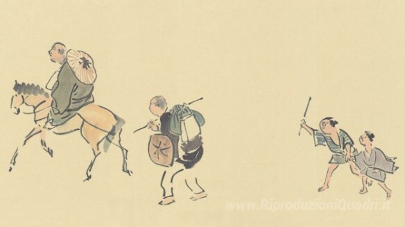 Ti offriamo una riproduzione artigianale su tela dell'opera famosa 'La strada stretta al profondo nord' di Yosa Buson, dal Museo delle Riproduzioni.