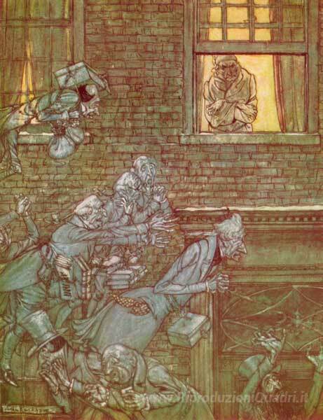 Ti offriamo una riproduzione artigianale su tela dell'opera famosa 'L'aria era piena di fantasmi, vagando qua e là in fretta irrequi' di Arthur Rackham, dal Museo delle Riproduzioni.