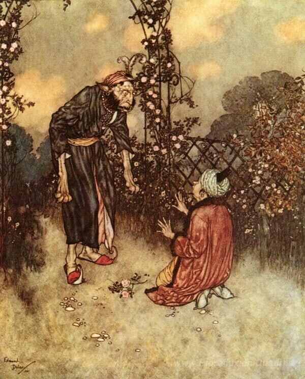 Ti offriamo una riproduzione artigianale su tela dell'opera famosa 'Lasciò cadere il Rose - dalla bella e la bestia' di Edmund Dulac, dal Museo delle Riproduzioni.