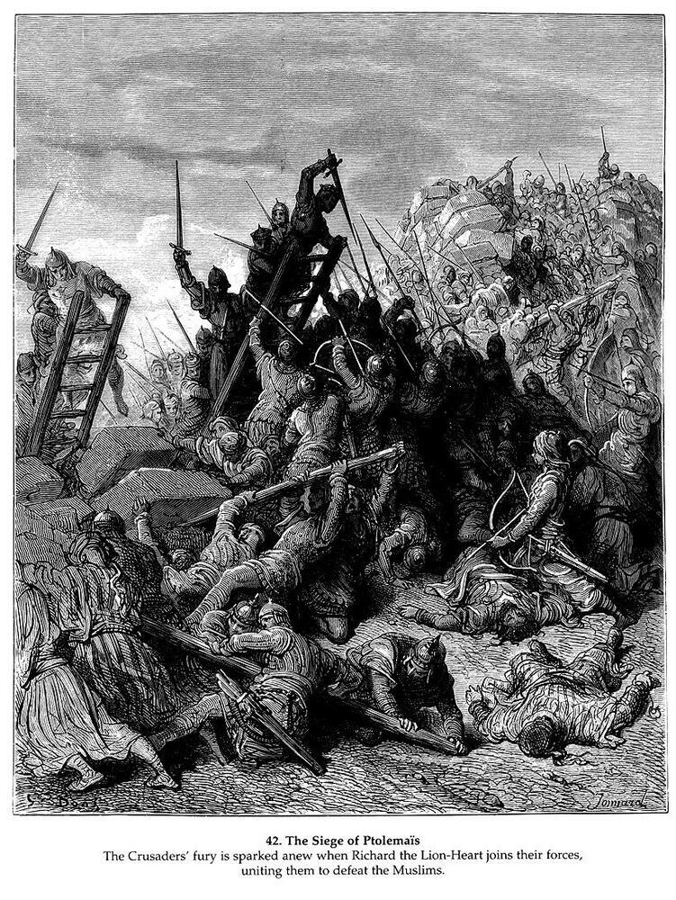 Ti offriamo una riproduzione artigianale su tela dell'opera famosa 'L'assedio di Tolemaide' di Gustave Dore, dal Museo delle Riproduzioni.