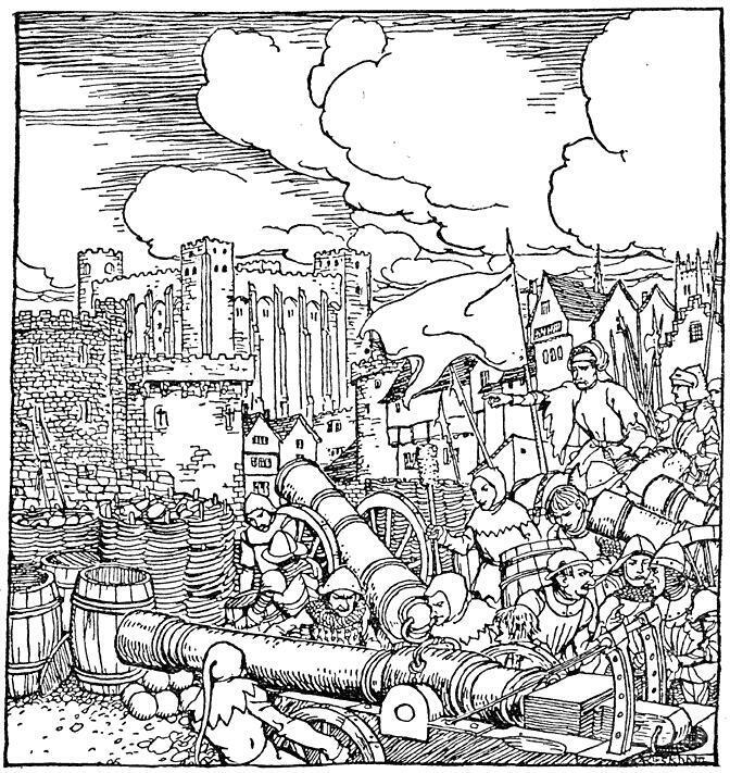 Ti offriamo una riproduzione artigianale su tela dell'opera famosa 'Le truppe del re assediare il castello di Lancillotto' di Arthur Rackham, dal Museo delle Riproduzioni.