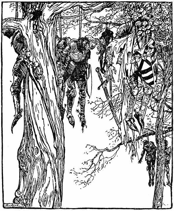 Ti offriamo una riproduzione artigianale su tela dell'opera famosa 'Le vittime del Cavaliere Rosso' di Arthur Rackham, dal Museo delle Riproduzioni.