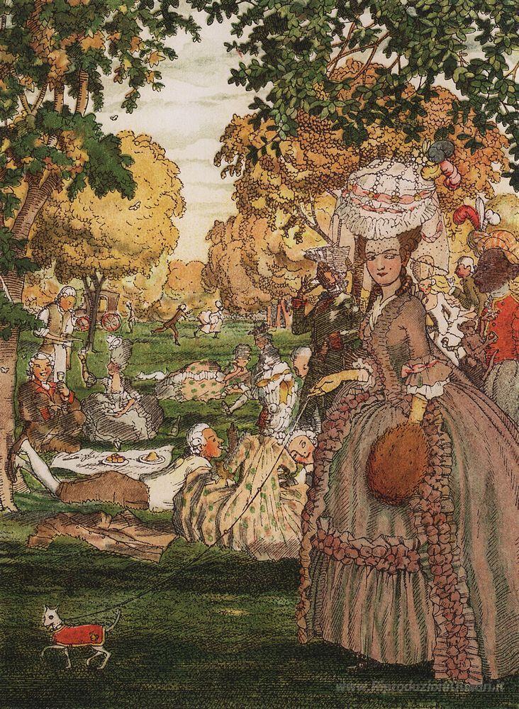 Il Libro della Marchesa. Illustrazione 6 trasmette un'atmosfera di morbida nostalgia e di sofisticata bellezza, rendendolo ideale per arricchire qualsiasi ambiente. Che sia in un salotto, in uno studio o in una camera da letto, questa opera non solo abbellisce lo spazio, ma invita anche alla contemplazione, creando un dialogo armonioso tra arte e arredamento. Scegliere un'opera di Konstantin Somov significa investire in un pezzo di storia e di cultura, capace di dare vita e carattere ai vostri ambienti.