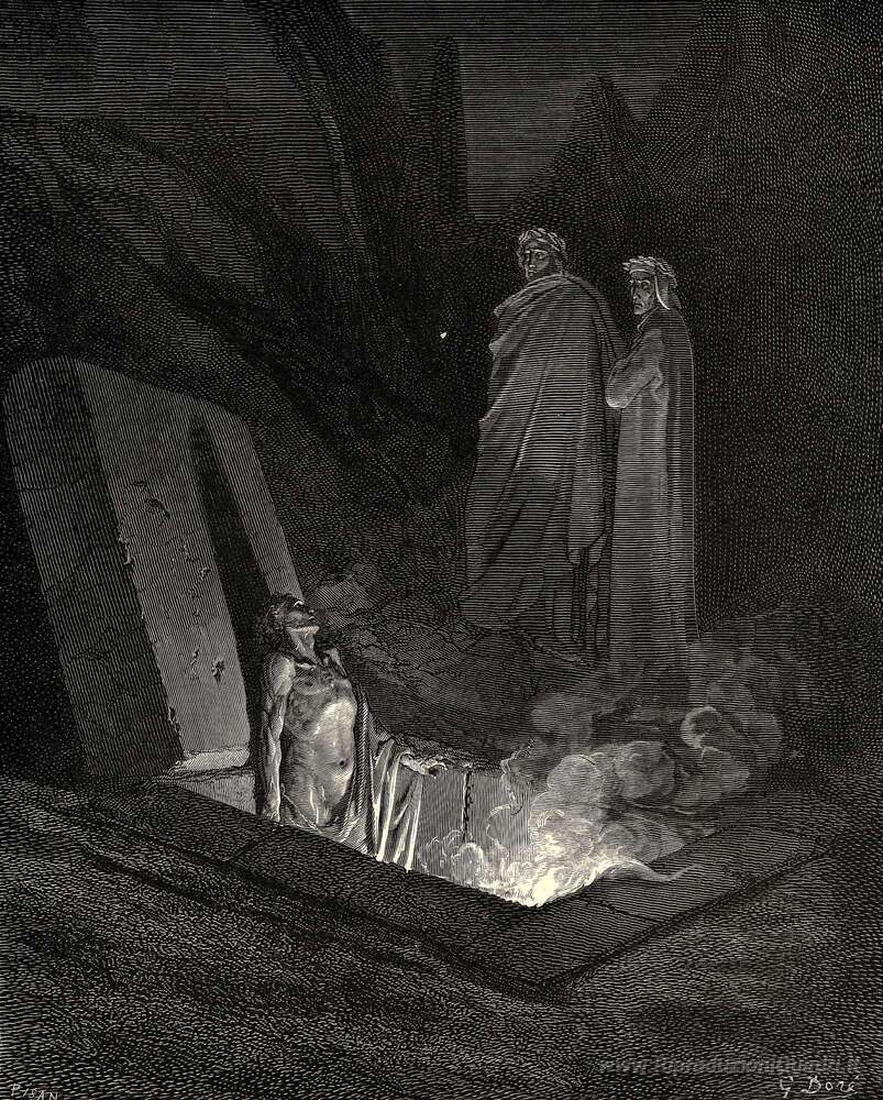 Ti offriamo una riproduzione artigianale su tela dell'opera famosa 'L'Inferno, Canto 10' di Gustave Dore, dal Museo delle Riproduzioni.