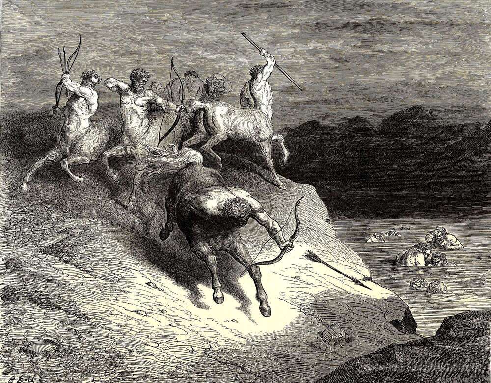 Ti offriamo una riproduzione artigianale su tela dell'opera famosa 'L'Inferno, Canto 12' di Gustave Dore, dal Museo delle Riproduzioni.