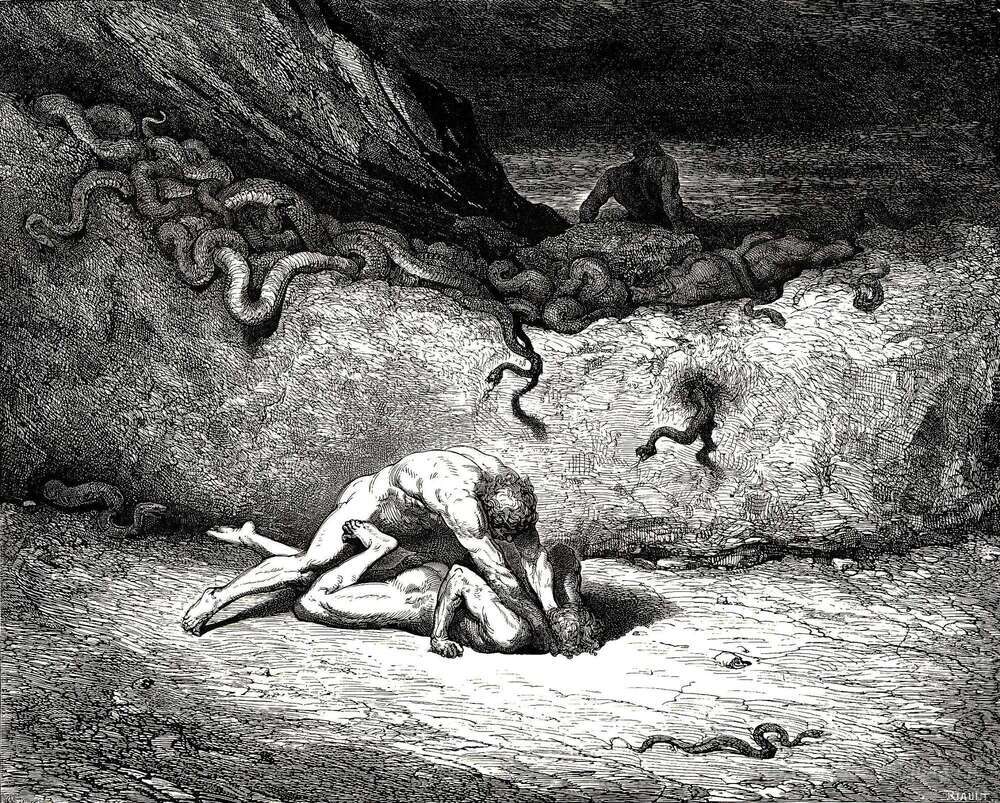 Ti offriamo una riproduzione artigianale su tela dell'opera famosa 'L'Inferno, Canto 30' di Gustave Dore, dal Museo delle Riproduzioni.