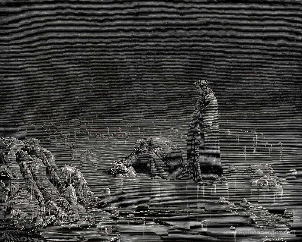 Ti offriamo una riproduzione artigianale su tela dell'opera famosa 'L'Inferno, Canto 32' di Gustave Dore, dal Museo delle Riproduzioni.