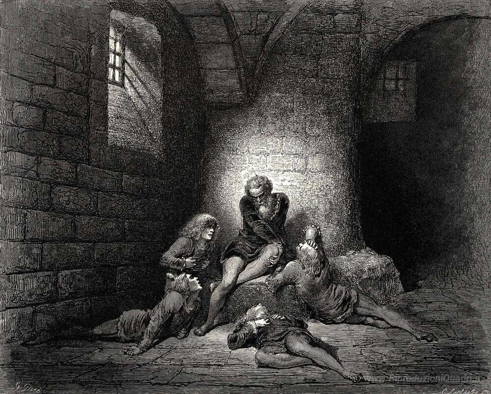 Ti offriamo una riproduzione artigianale su tela dell'opera famosa 'L'Inferno, Canto 33' di Gustave Dore, dal Museo delle Riproduzioni.
