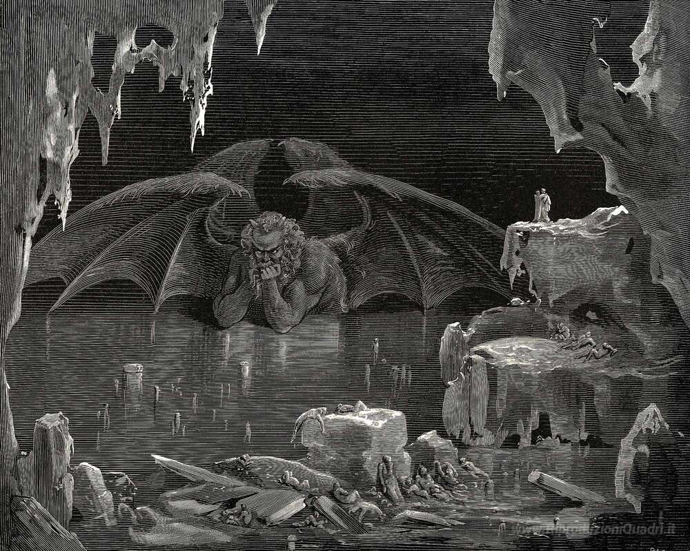 Ti offriamo una riproduzione artigianale su tela dell'opera famosa 'L'Inferno, Canto 34' di Gustave Dore, dal Museo delle Riproduzioni.