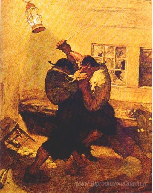 Benvenuti nella nostra selezione esclusiva di dipinti a olio, dove il talento dei più grandi artisti italiani si fonde con il calore della tradizione. Oggi vi presentiamo un'opera straordinaria, Lotta coltello tra i pirati, realizzata dall'illustre artista N.C. Wyeth. Con il suo stile audace e narrativo, Wyeth cattura l'attenzione dello spettatore, trasportandolo in un’epoca di avventure e intrighi marittimi.