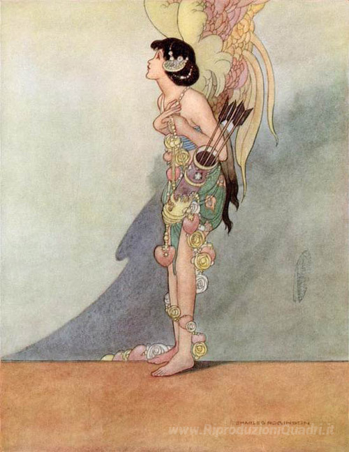 Ti offriamo una riproduzione artigianale su tela dell'opera famosa 'L'usignolo e la rosa' di Charles Robinson, dal Museo delle Riproduzioni.