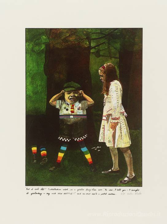 Ti offriamo una riproduzione artigianale su tela dell'opera famosa 'Ma non è vero vecchio! ' Tweedledum pianto' di Peter Blake, dal Museo delle Riproduzioni.