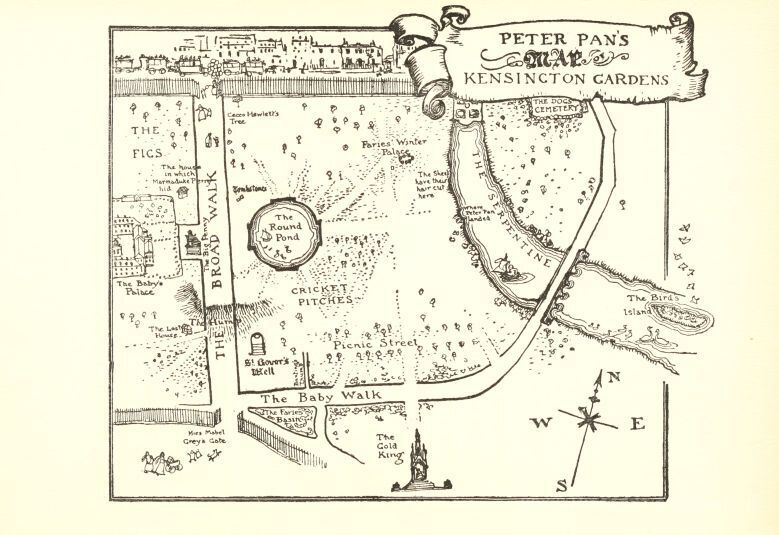 Ti offriamo una riproduzione artigianale su tela dell'opera famosa 'Mappa di Kensington Gardens di Peter Pan' di Arthur Rackham, dal Museo delle Riproduzioni.
