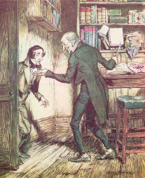 Ti offriamo una riproduzione artigianale su tela dell'opera famosa 'Ora, ti dirò che cosa, il mio amico, disse Scrooge. Non ho inten' di Arthur Rackham, dal Museo delle Riproduzioni.