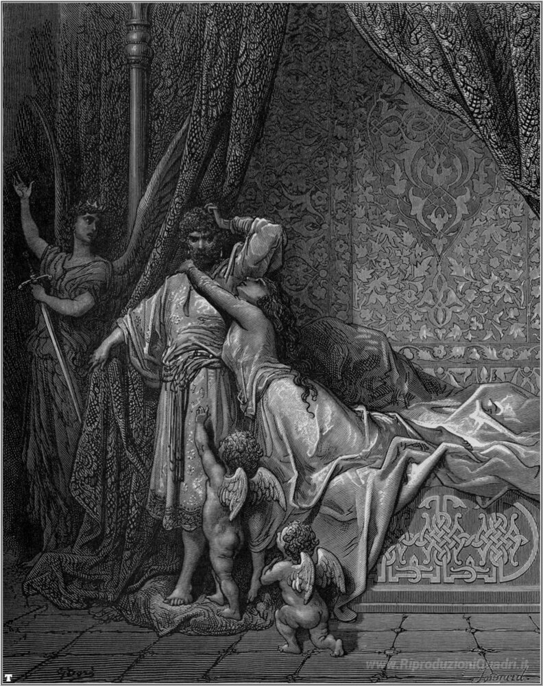 Ti offriamo una riproduzione artigianale su tela dell'opera famosa 'Orlando Furioso' di Gustave Dore, dal Museo delle Riproduzioni.