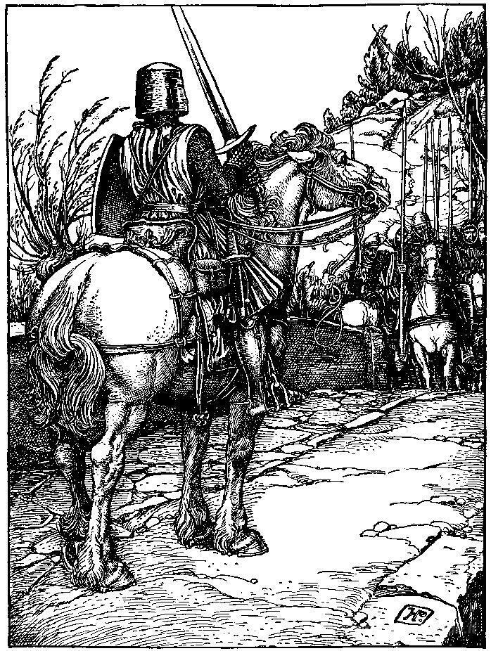 Ti offriamo una riproduzione artigianale su tela dell'opera famosa 'Otto della Mano d'argento 38' di Howard Pyle, dal Museo delle Riproduzioni.