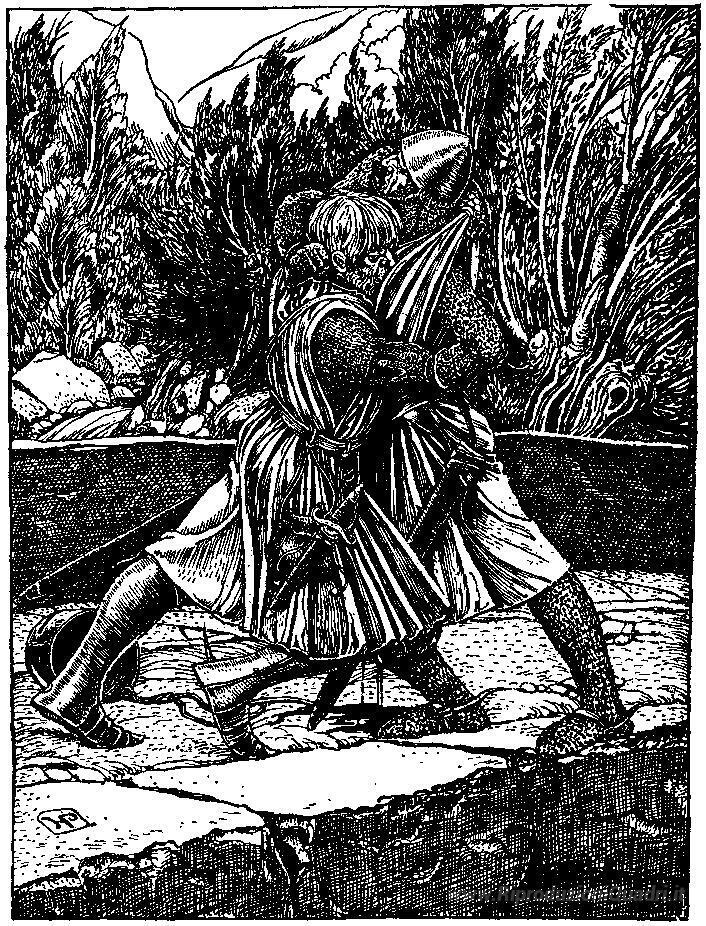 Ti offriamo una riproduzione artigianale su tela dell'opera famosa 'Otto della Mano d'argento 39' di Howard Pyle, dal Museo delle Riproduzioni.