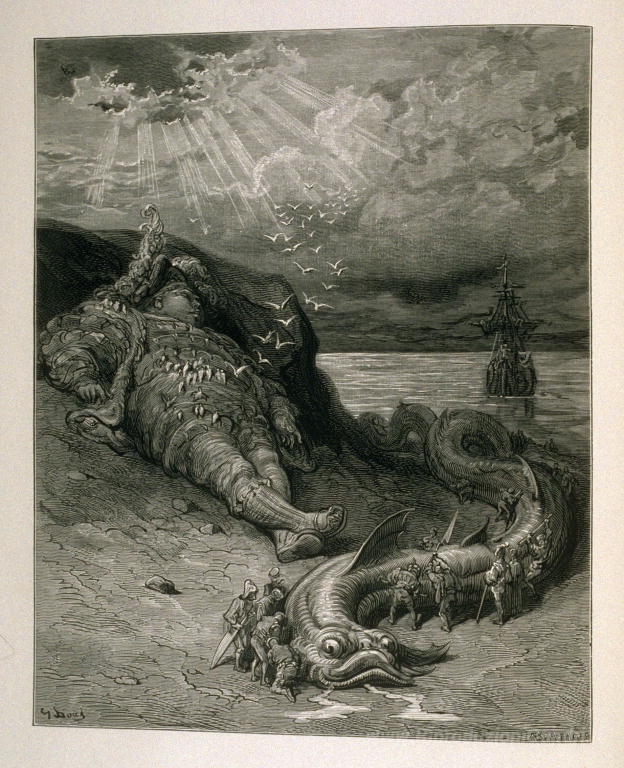 Ti offriamo una riproduzione artigianale su tela dell'opera famosa 'Pantagruel' di Gustave Dore, dal Museo delle Riproduzioni.