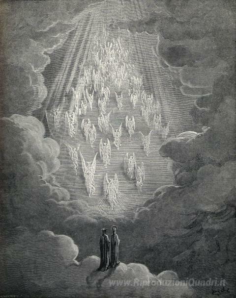 Ti offriamo una riproduzione artigianale su tela dell'opera famosa 'Paradiso Canto 1' di Gustave Dore, dal Museo delle Riproduzioni.