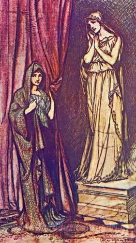 Ti offriamo una riproduzione artigianale su tela dell'opera famosa 'Paulina scostò la tenda che nascondeva questa famosa Statua' di Arthur Rackham, dal Museo delle Riproduzioni.