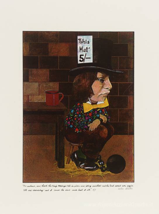 Ti offriamo una riproduzione artigianale su tela dell'opera famosa 'Per esempio ora, ora c'è messaggero del re '' di Peter Blake, dal Museo delle Riproduzioni.