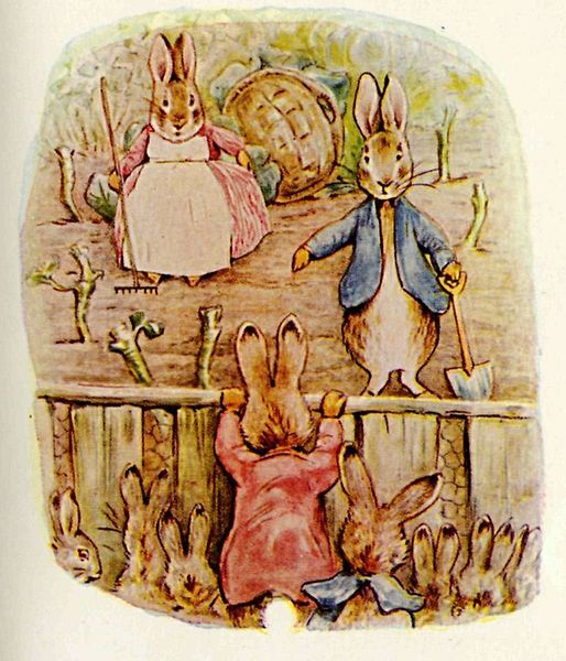 Ti offriamo una riproduzione artigianale su tela dell'opera famosa 'Peter Rabbit - Benjamin e Flopsy Bunny' di Beatrix Potter, dal Museo delle Riproduzioni.